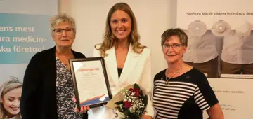 Från vänster: ILCO:s förbundsordförande Charlotte Bygdemo Toytziaridis, Stomistipendiaten Matilda Ahdrian, ILCO Västerbottens ordförande Gunnel Brodin.