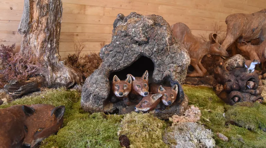 Cirka 250 skulpturer skapade Uno Axelsson av stammar i vilka han i sin fantasi kunde se vad de skulle kunna föreställa. Det är mycket välgjort och verklighetstroget. En del är riktigt humoristiska. Där finns alla djur från bondgården och skogen.