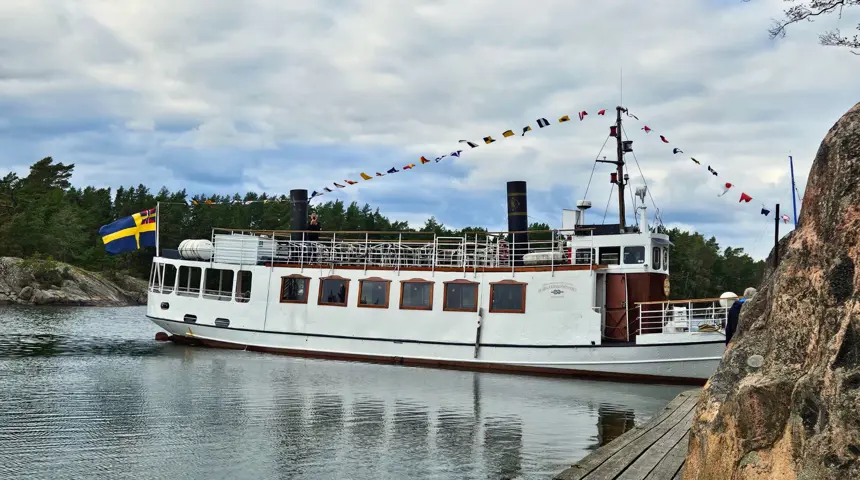 Vi blev varmt emottagna av besättningen Antonia och Patrik. Det var en underbar sensommardag med soligt och varmt väder. Patrik tog oss med på en härlig resa på stilla och fint vatten i den vackra skärgården bland kobbar och skär. På båten serverades fika med hembakta bullar och dryck av Antonia. En proffsig och trevlig tjej som också senare tog hand om oss på restaurangen. För henne var inget omöjligt.