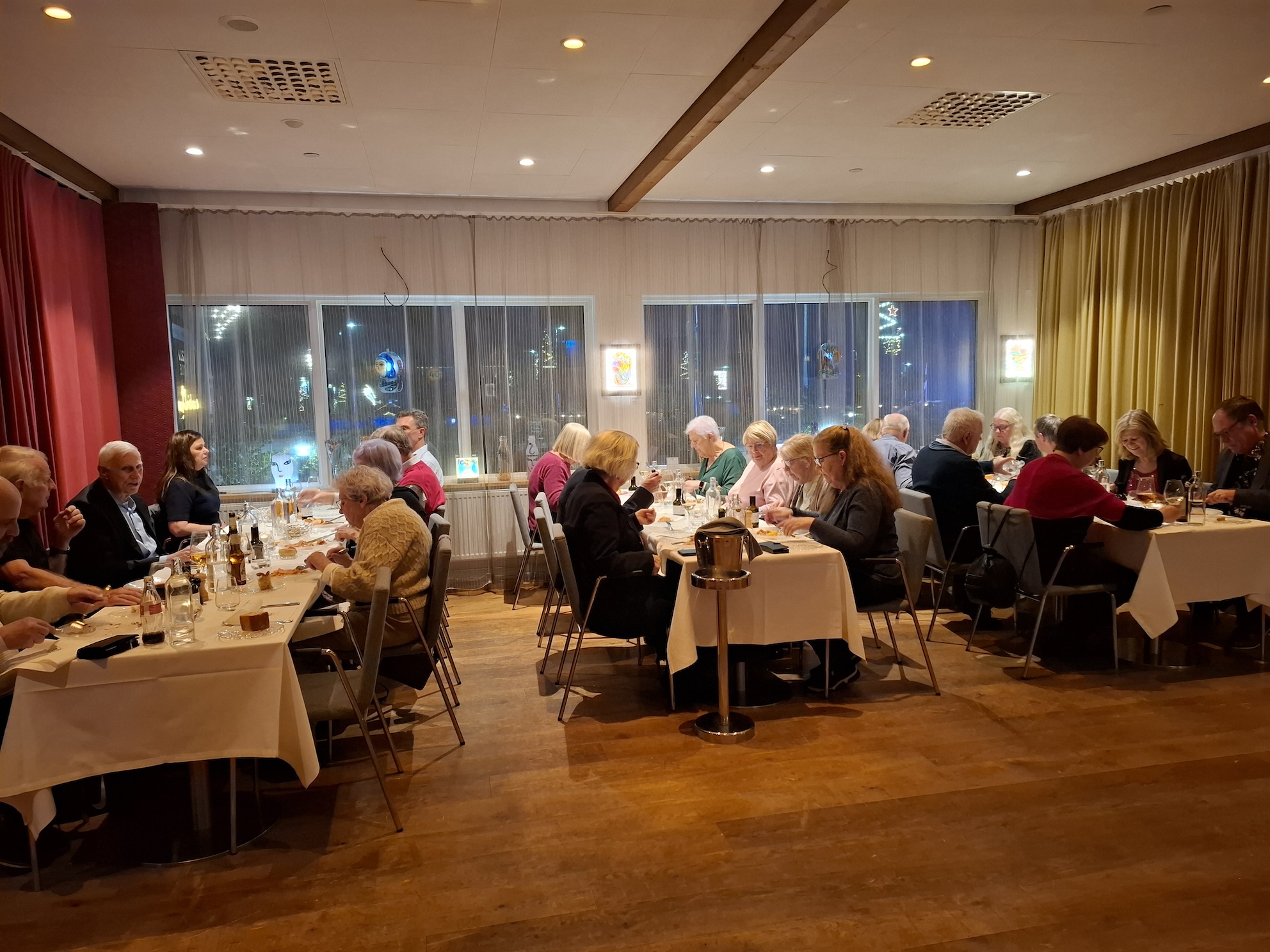 Kvällen fortsatte med en uppskattad laxtallrik till middag och därefter samlades vi i loungen för mingel och lotteri.